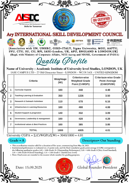 La valutazione finale emessa dall’Istituto Accademico di Studi di livello Universitario, deve essere considerata quale “CERTIFICAZIONE” della preparazione Professionale e Didattica del candidato secondo il giudizio INSINDACABILE dello IASU e che impegna esclusivamente la struttura emittente e il corsista, senza carattere di equipollenza a titoli statali.